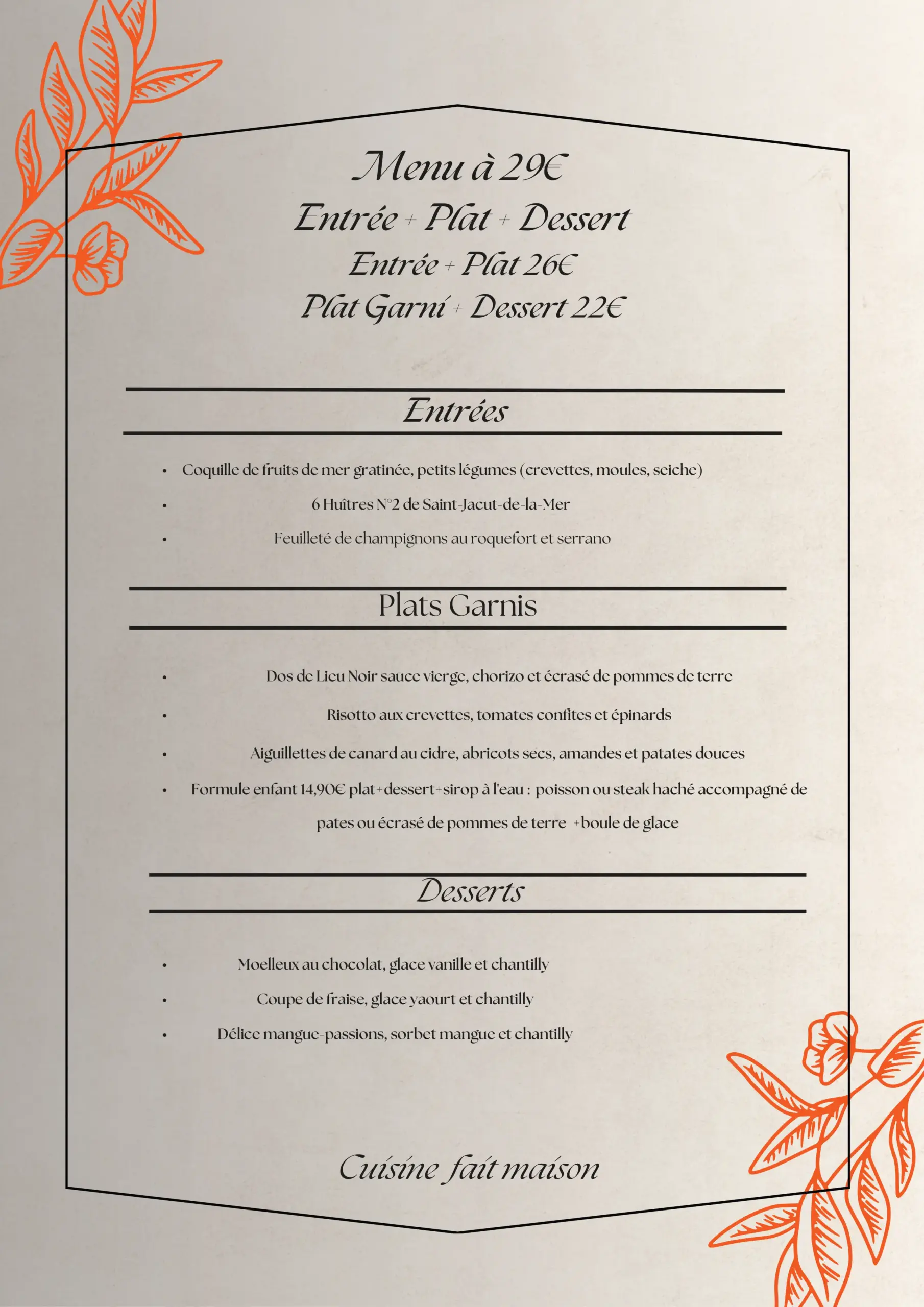 Plat : Poisson ou Steak Haché accompagné de Frites